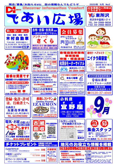 地元のお役立ち情報を毎月10日に折込チラシでお届けしております。各種施設のご招待チケットや小冊子等のプレゼント情報も併せて掲載をしております。