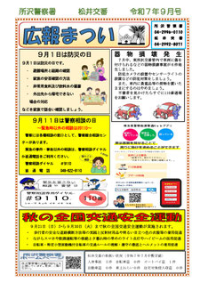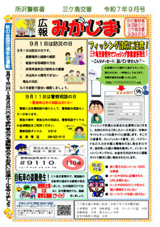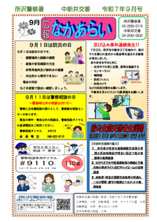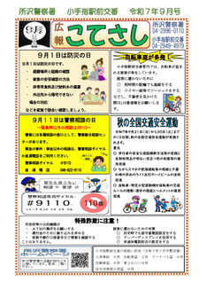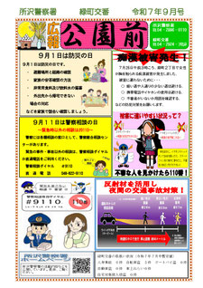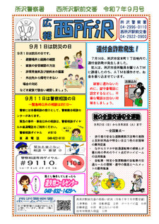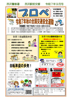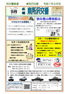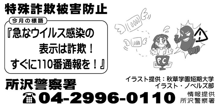 こちらの「啓発標語とイラスト」は、所沢警察署・埼玉県立所沢西高等学校・読売センター、3者で連携して毎月制作しています。所沢市内にある読売新聞販売店(YC)から新聞購読をしていただいているお客様へ、購読料金領収書の裏面に印刷して毎月お届けをしています。